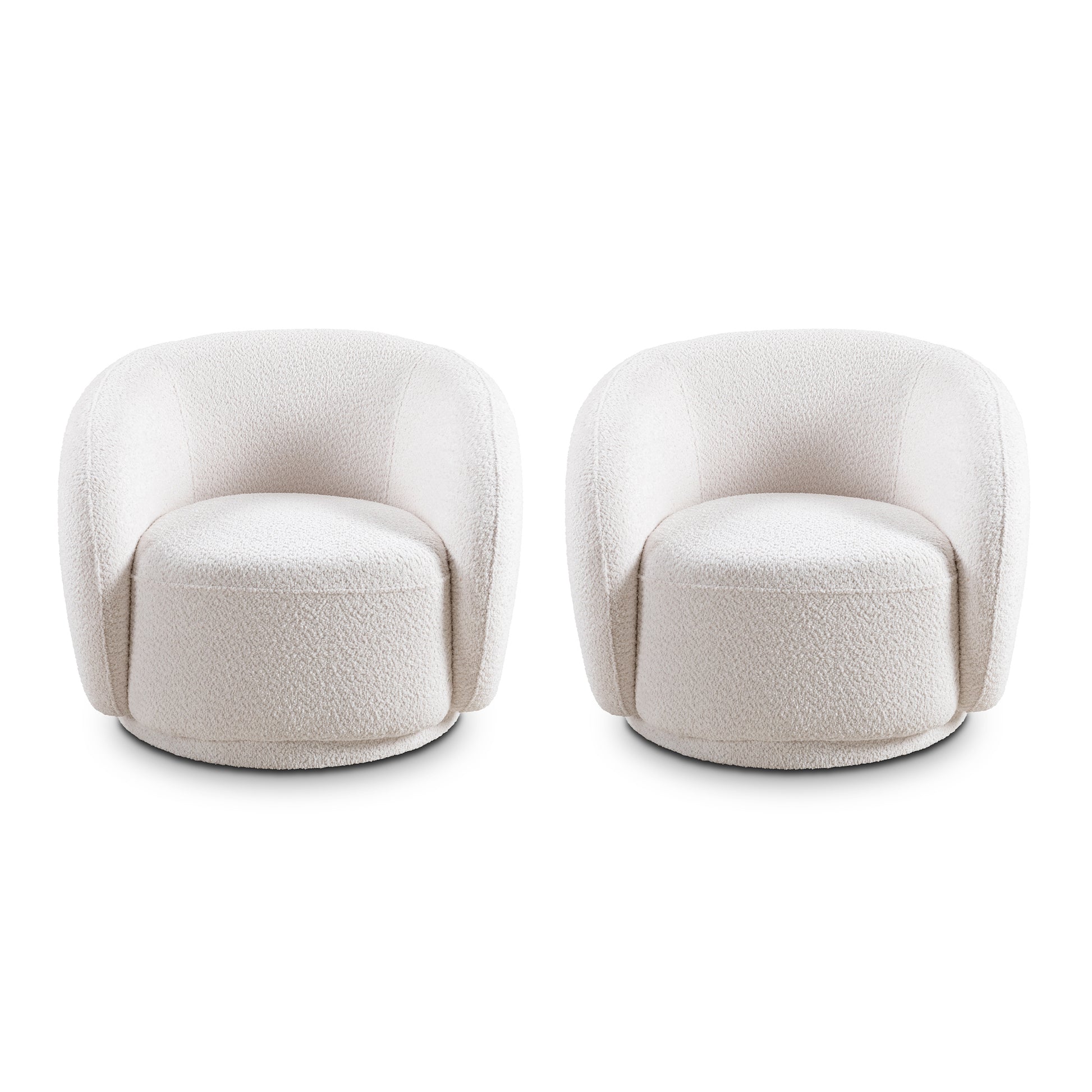 Cybella Chair Set – Bouclé Upholstery, Swivel Barrel Frame, CozySolo Design